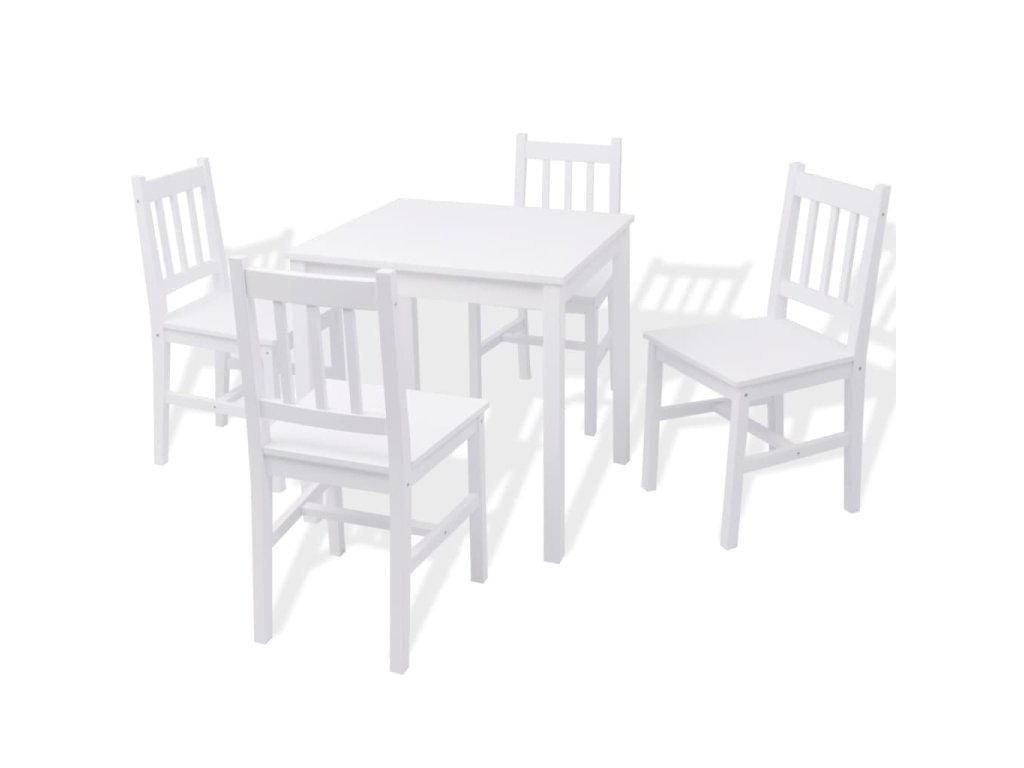 Jedálenský stôl a stoličky sú vyrobené z vysoko kvalitného borovicového dreva, takže sú veľmi stabilné a odolné. Jedálenský set sa ľahko čistí s vlhkou handričkou.
