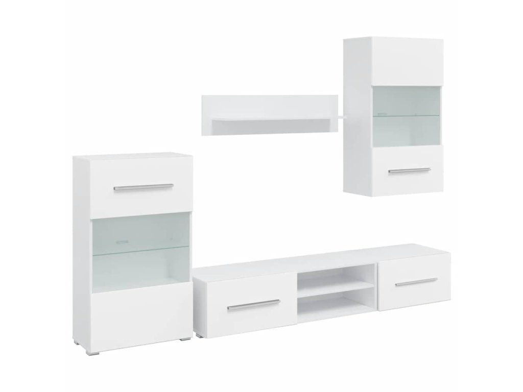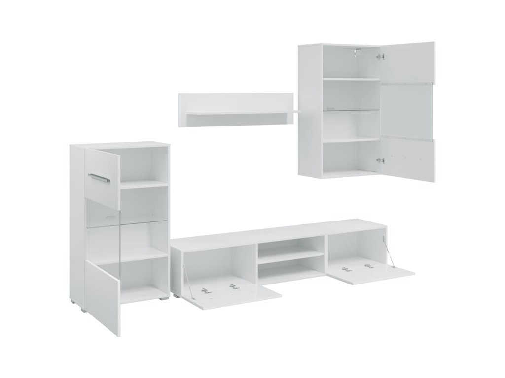Sada pozostáva z nástennej skrinky, stojacej skrinky, 2 skriniek na TV a 1 nástennej police, a tak poskytuje dostatok miesta na multimédiá, knihy či ďalšie menšie predmety. Predstavuje tiež ideálne miesto na vystavenie ozdobných predmetov, rámikov s fotkami či kvetináčov s kvetmi. Skrinky na TV s výklopnými dvierkami zabezpečujú dosť priestoru na prehľadné odkladanie kníh, DVD prehrávačov, mediálnych nosičov a iných predmetov, ktoré v obývačke nesmú chýbať. Nástenná skrinka a stojaca skrinka sú vybavené čiastočne presklennými dvierkami a troma policami, vrátane jednej sklenej police s energeticky úsporným LED osvetlením.