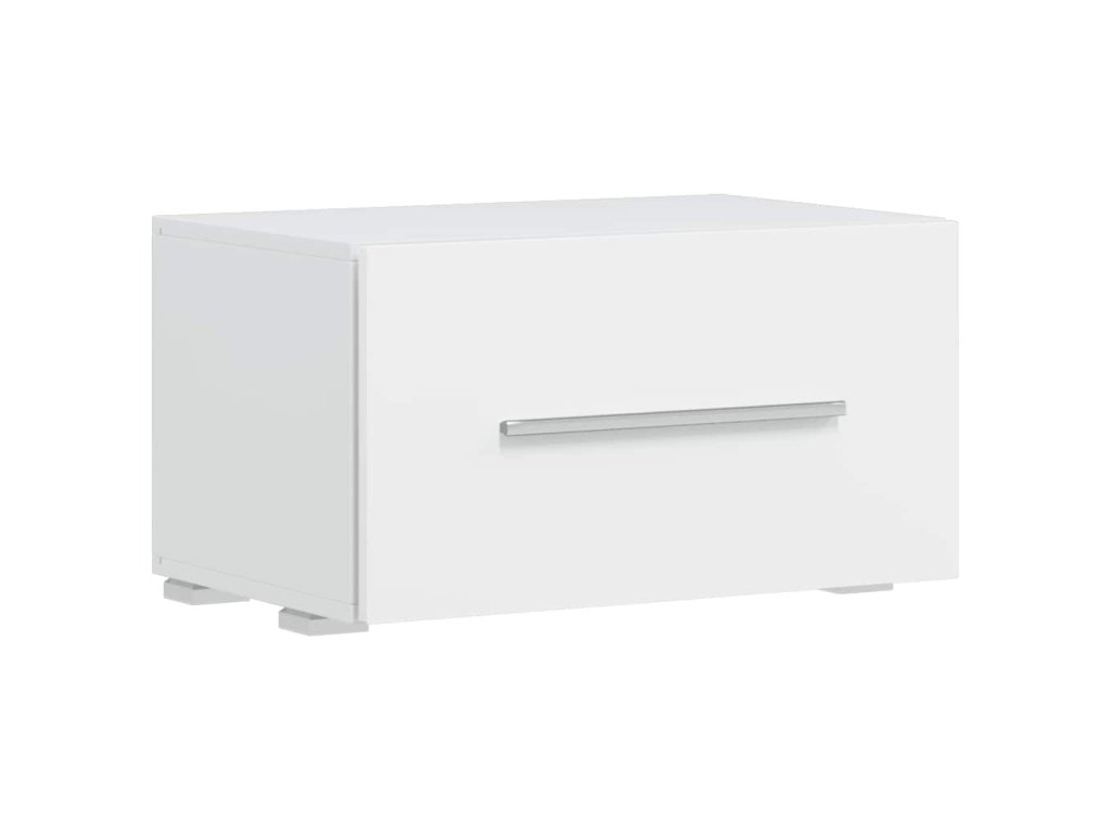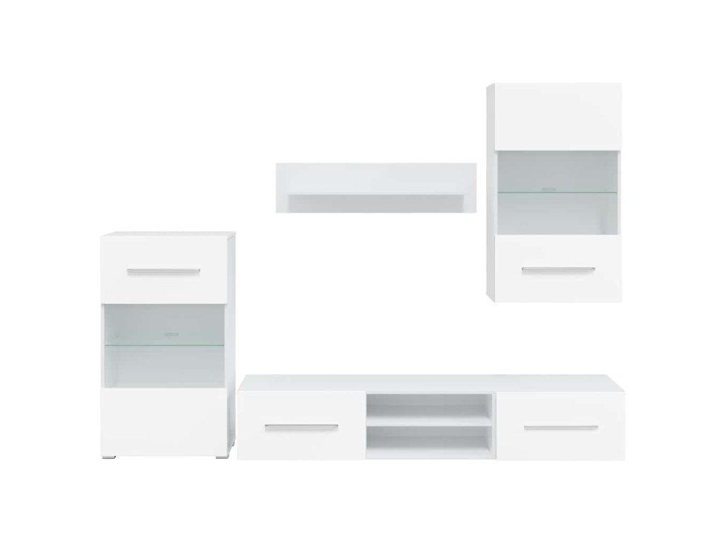 Nástenná skrinka je vyrobená z vysokokvalitného kompozitného dreva s matným bielym povrchom, zatiaľ čo čelné panely majú povrchovú úpravu s vysokým leskom, ktorá dotvára moderný vzhľad celej zostavy, vďaka čomu sa bude hodiť do každého interiéru.