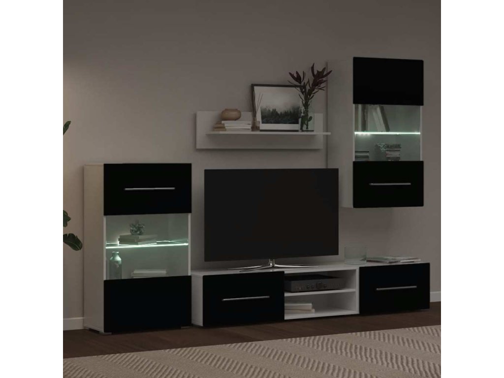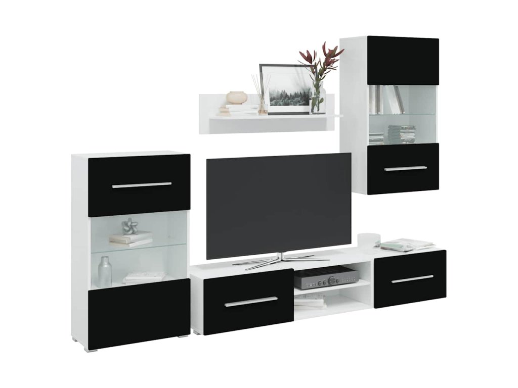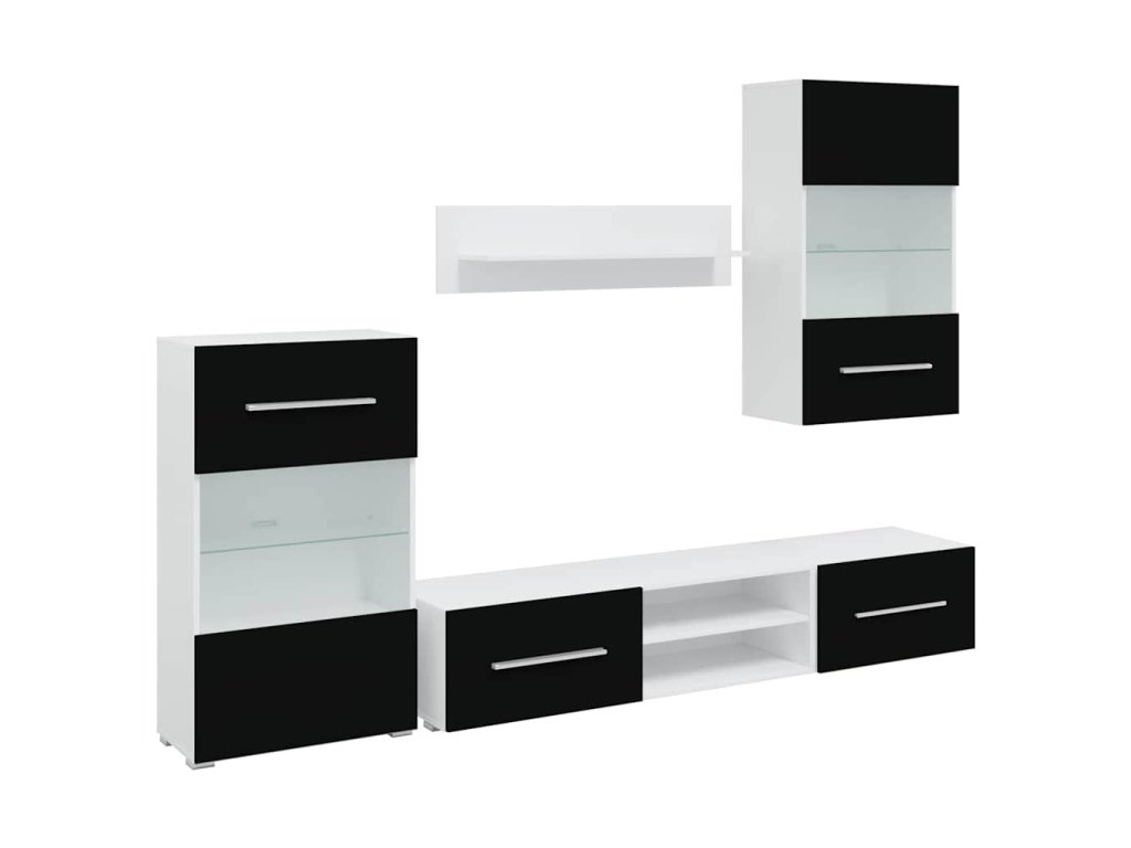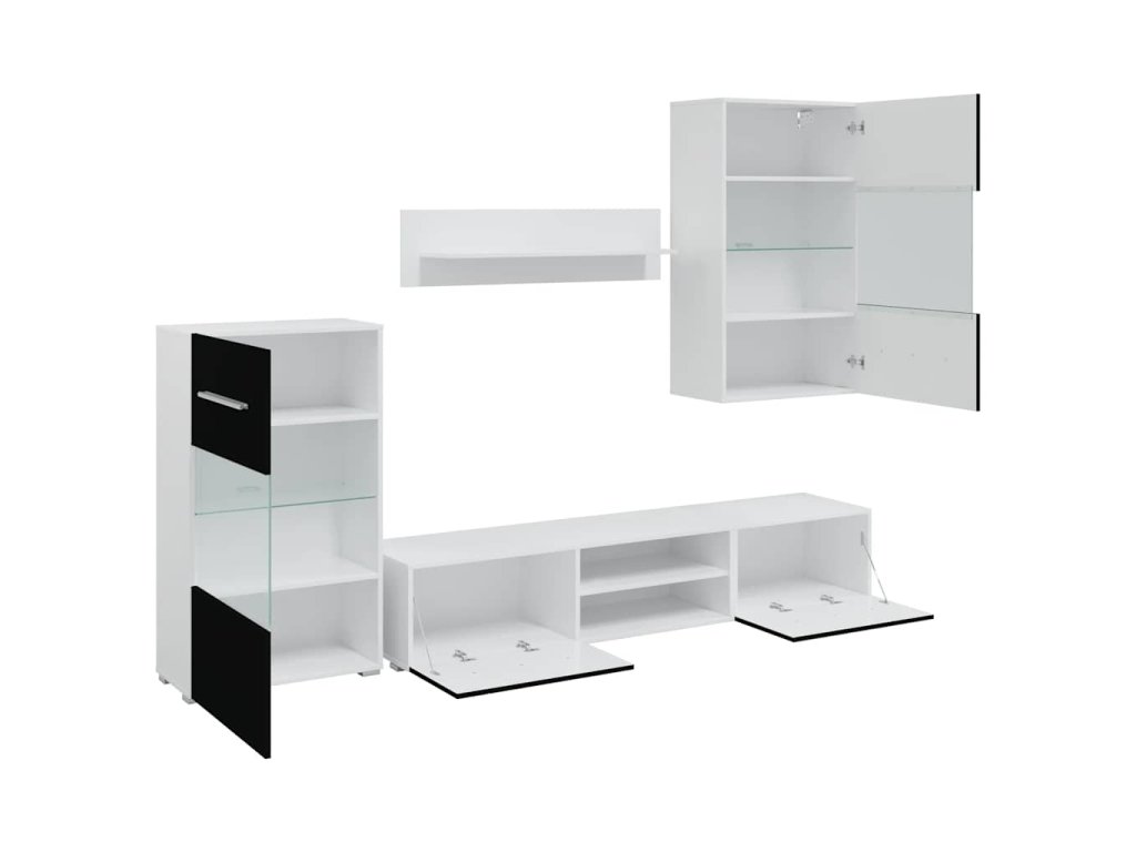 Sada pozostáva z nástennej skrinky, stojacej skrinky, 2 skriniek na TV a 1 nástennej police, a tak poskytuje dostatok miesta na multimédiá, knihy či ďalšie menšie predmety. Predstavuje tiež ideálne miesto na vystavenie ozdobných predmetov, rámikov s fotkami či kvetináčov s kvetmi. Skrinky na TV s výklopnými dvierkami zabezpečujú dosť priestoru na prehľadné odkladanie kníh, DVD prehrávačov, mediálnych nosičov a iných predmetov, ktoré v obývačke nesmú chýbať. Nástenná skrinka a stojaca skrinka sú vybavené čiastočne presklennými dvierkami a troma policami, vrátane jednej sklenej police s energeticky úsporným LED osvetlením.