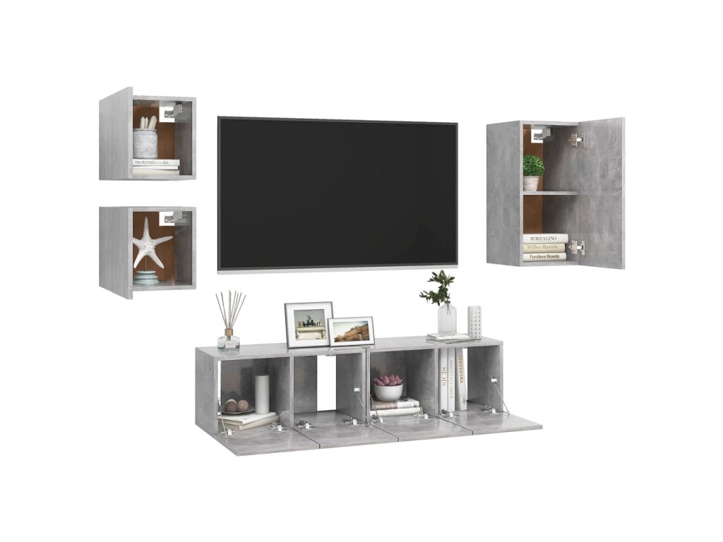 Táto sada závesných TV skriniek je vybavená veľkým úložným priestorom na uloženie rôznych predmetov a vo vašej domácnosti vytvorí praktický a pútavý doplnok.