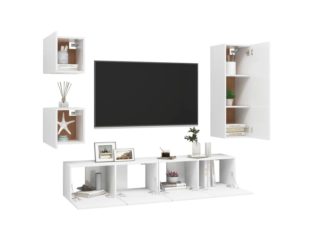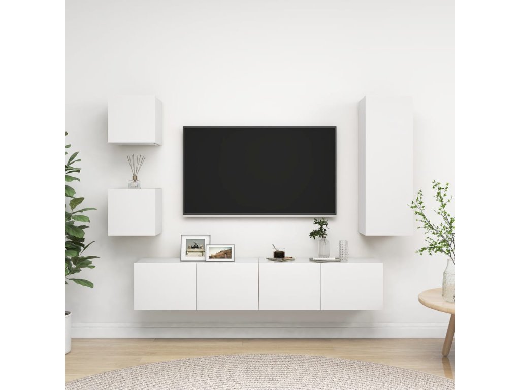 Táto sada závesných TV skriniek je vybavená veľkým úložným priestorom na uloženie rôznych predmetov a vo vašej domácnosti vytvorí praktický a pútavý doplnok.