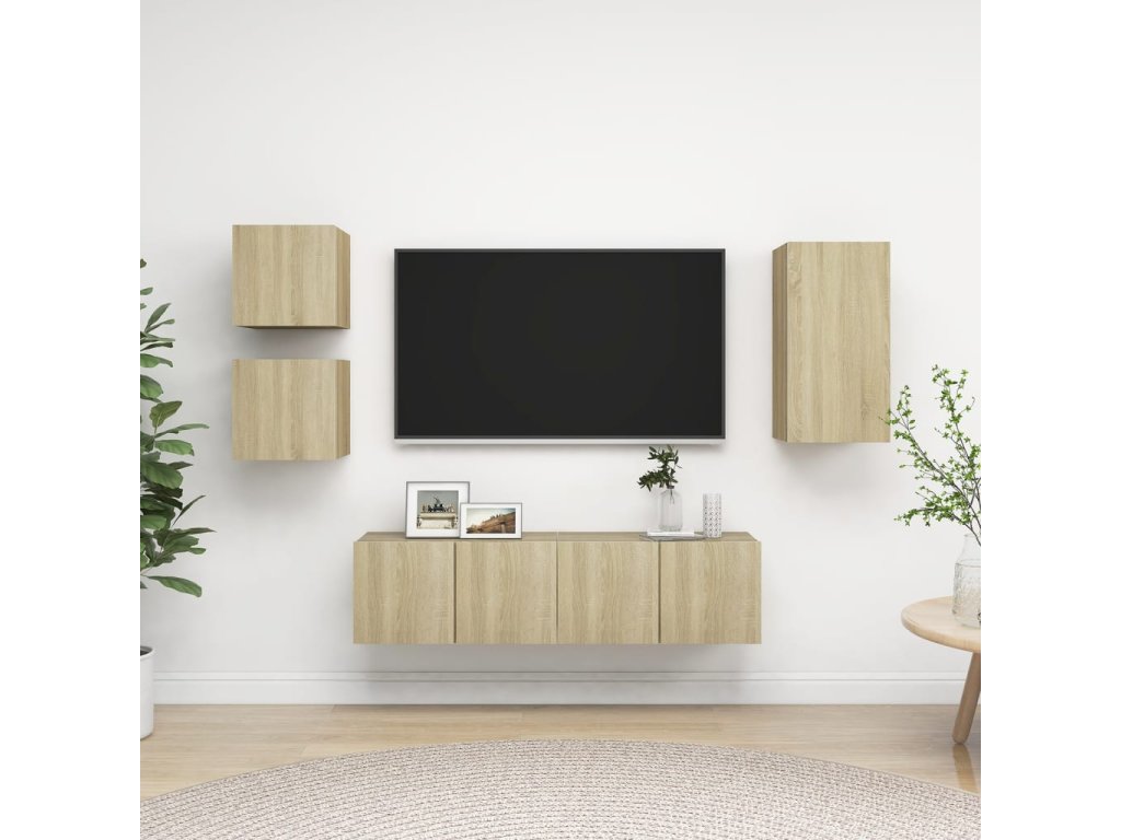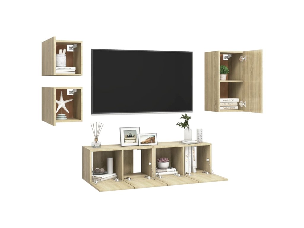 Táto sada závesných TV skriniek je vybavená veľkým úložným priestorom na uloženie rôznych predmetov a vo vašej domácnosti vytvorí praktický a pútavý doplnok.