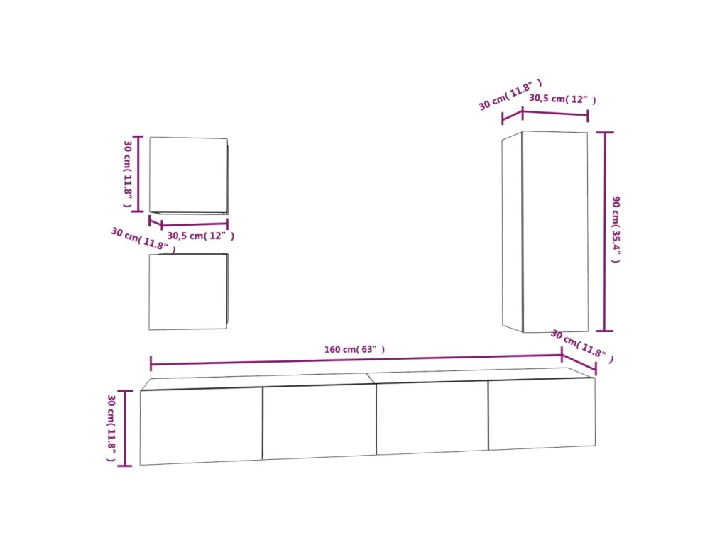 - 1 x TV skrinka: 30,5 x 30 x 90 cm D x Š x V)