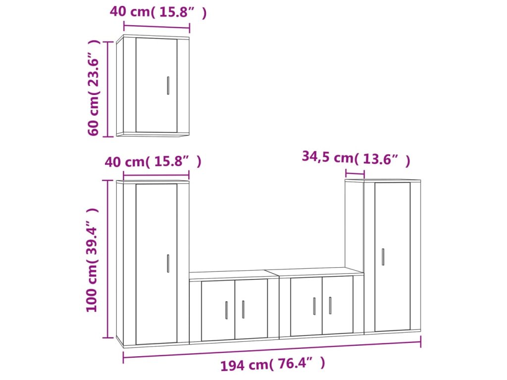 - 2 x TV skrinka: 40 x 34,5 x 100 cm (Š x H x V)