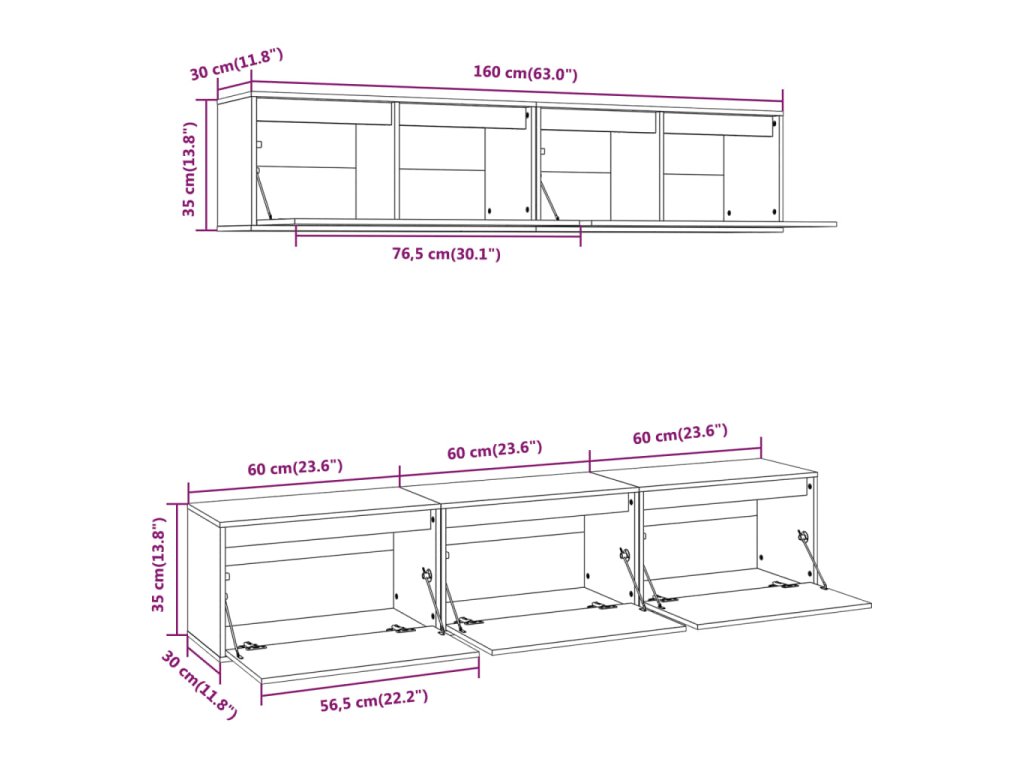 - 3 x TV skrinka: 60 x 30 x 35 cm (Š x H x V)