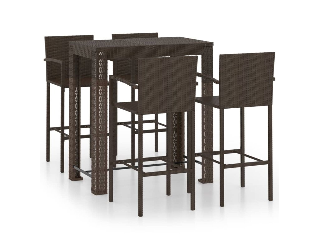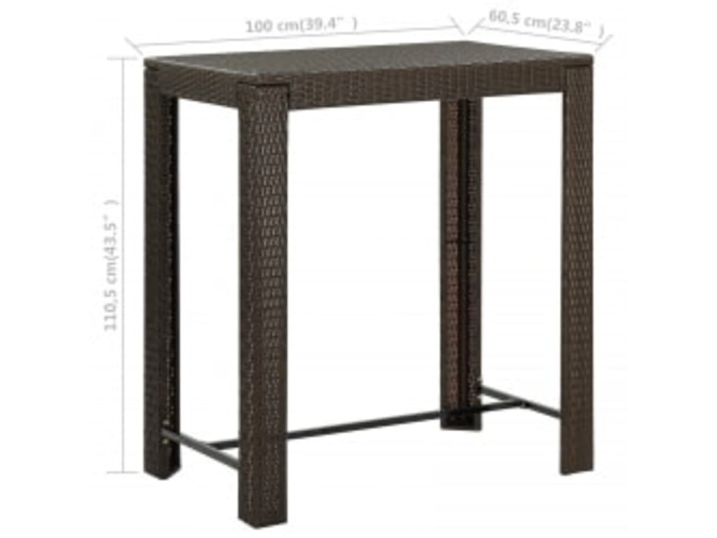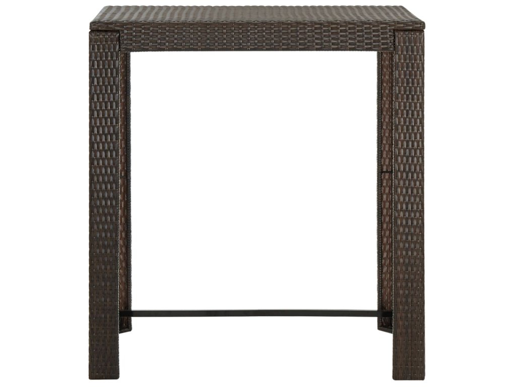 Barový stôl je opatrený oceľovým rámom s práškovanou povrchovou úpravou, vďaka čomu je stabilný a odolný. Stolová doska je ideálna na odloženie nápojov, jedla alebo dekoratívnych predmetov. Stoličky majú pevnú konštrukciu z oceľového rámu a sú vyrobené z PE ratanu odolného voči poveternostným vplyvom, čo zaisťuje ich stabilitu a ľahké premiestňovanie. Opierka nôh dodáva stoličke väčšie pohodlie počas sedenia.