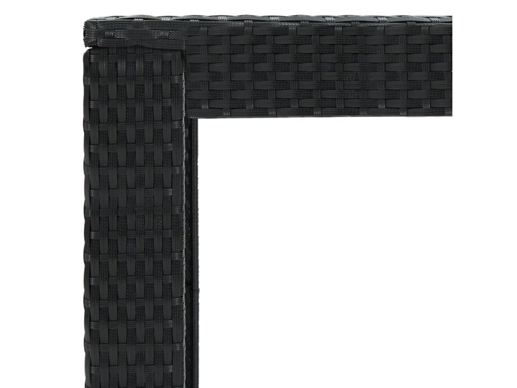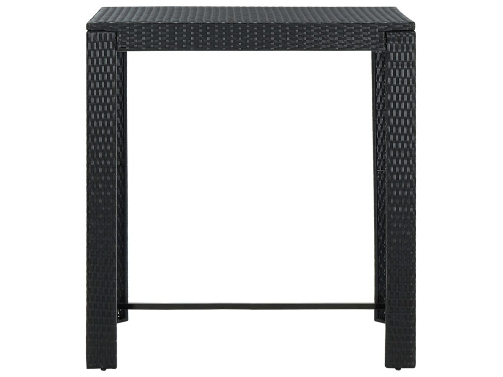 Barový stôl je opatrený oceľovým rámom s práškovanou povrchovou úpravou, vďaka čomu je stabilný a odolný. Štvorcová stolová doska je ideálna na položenie nápojov, jedla alebo dekoratívnych predmetov. Stoličky majú pevnú konštrukciu z oceľového rámu a sú vyrobené z PE ratanu odolného voči poveternostným vplyvom, čo zaisťuje ich stabilitu a ľahké premiestňovanie. Vankúš a opierka nôh tiež zvyšujú pohodlie pri sedení na stoličke. Poťah vankúša z polyesteru so skrytým zipsom uľahčuje čistenie.