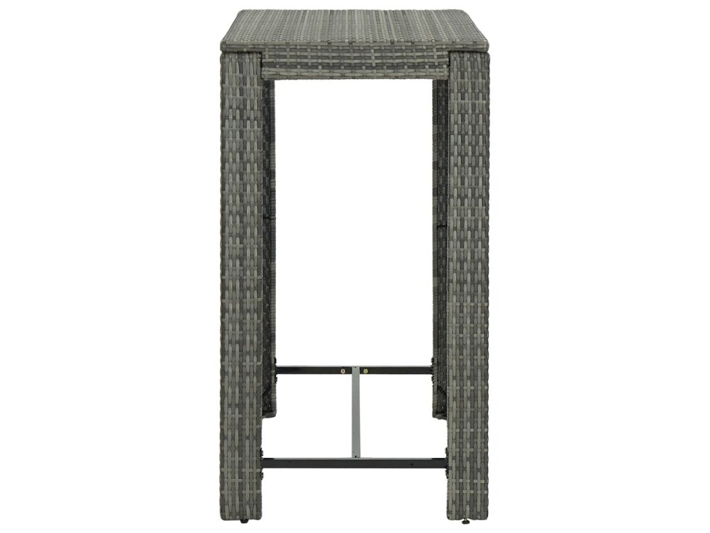 Barový stôl je opatrený oceľovým rámom s práškovanou povrchovou úpravou, vďaka čomu je stabilný a odolný. Štvorcová stolová doska je ideálna na položenie nápojov, jedla alebo dekoratívnych predmetov. Stoličky majú pevnú konštrukciu z oceľového rámu a sú vyrobené z PE ratanu odolného voči poveternostným vplyvom, čo zaisťuje ich stabilitu a ľahké premiestňovanie. Vankúš a opierka nôh tiež zvyšujú pohodlie pri sedení na stoličke. Poťah vankúša z polyesteru so skrytým zipsom uľahčuje čistenie.