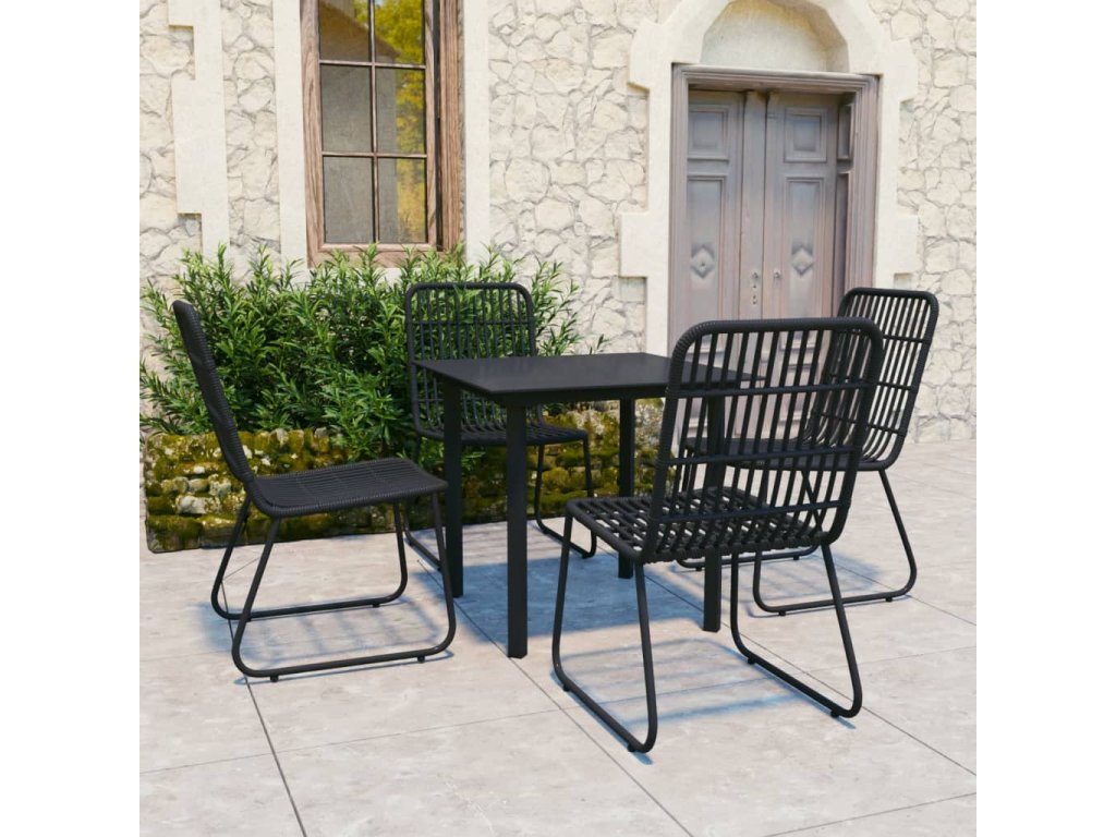 Vďaka oceľovému rámu je sada stola aj stoličiek robustná a odolná. Pretože je súprava ľahká, všetky položky sa dajú jednoducho presúvať a sú vhodné na vonkajšie použitie. Sklenená stolová doska sa ľahko čistí vlhkou handričkou. Jednoduchá elegancia tejto jedálenskej súpravy ozvláštni vaše každodenné večere. Stoličky sú vybavené polyratanovými sedadlami a operadlami, ktoré sú odolné voči poveternostným vplyvom.