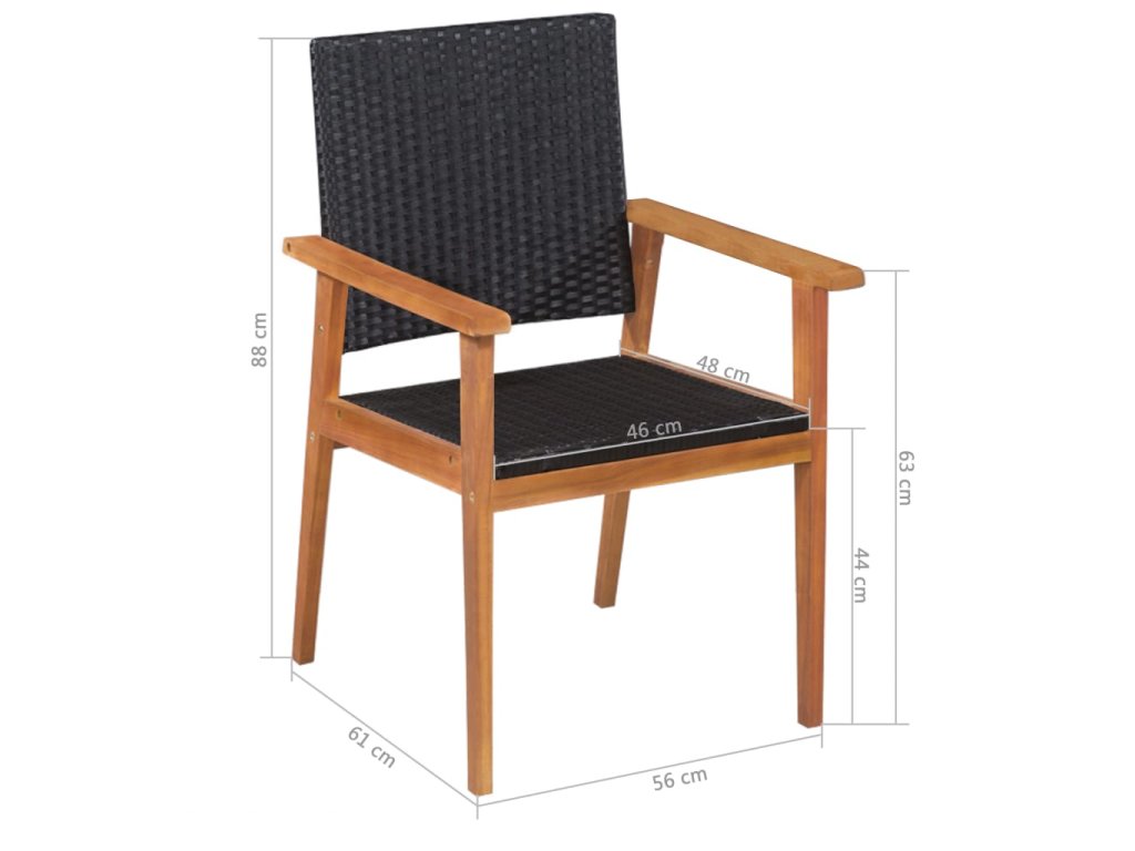 Sedadlá a operadlá stoličiek sú vďaka PE ratanu vodeodolné a ľahko sa čistia. Rám z masívneho akáciového dreva zaisťuje stabilitu a odolnosť sedacej súpravy a dodáva jej rustikálny a retro štýl. Všetky položky sa jednoducho montujú. Balenie obsahuje 1 jedálenský stôl a 4 jedálenské stoličky.