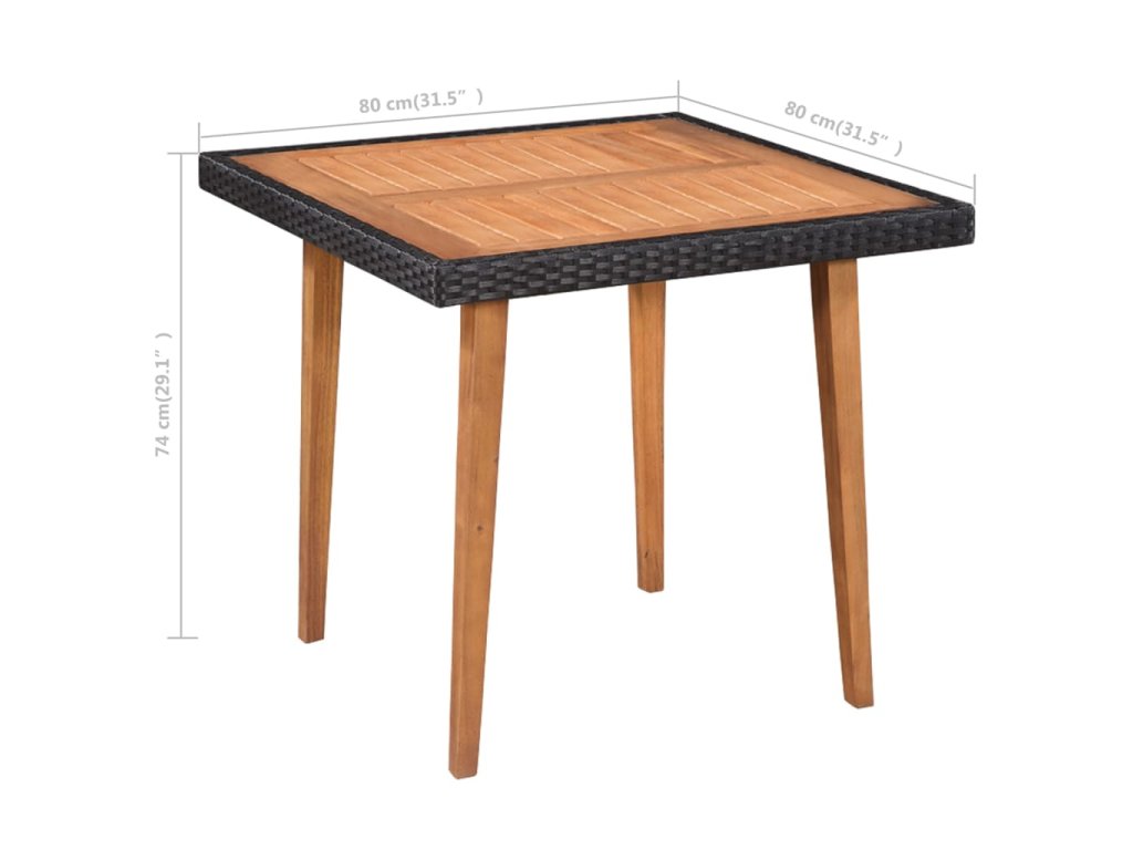 Sedadlá a operadlá stoličiek sú vďaka PE ratanu vodeodolné a ľahko sa čistia. Rám z masívneho akáciového dreva zaisťuje stabilitu a odolnosť jedálenskej súpravy a dodáva jej rustikálny a retro štýl. Všetky položky sa jednoducho montujú. Balenie obsahuje 1 jedálenský stôl a 4 jedálenské stoličky.