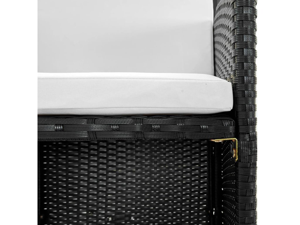 Táto ratanová jedálenská sada s elegantným dizajnom bude skvelou voľbou pre večere na čerstvom vzduchu či relaxovanie na záhrade. Majú oceľové rámy s práškovým náterom a tak sú stôl, stoličky a taburetky pevné a robustné. Vďaka ich ľahkej konštrukcii je možné všetky časti súpravy jednoducho presúvať. Polyratan je vodeodolný a odolný voči vplyvom počasia a jedálenská sada sa tak ľahko čistí. Sklenený vrch stola sa taktiež jednoducho čistí pomocou navlhčenej handričky.