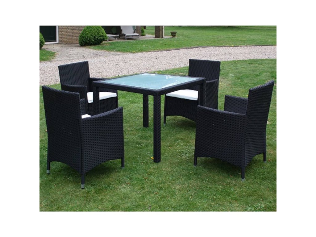 - V balení sa nachádza 1 stôl so sklenenou doskou, 4 ratanové kreslá a 4 odnímatené podložky na sedadlo