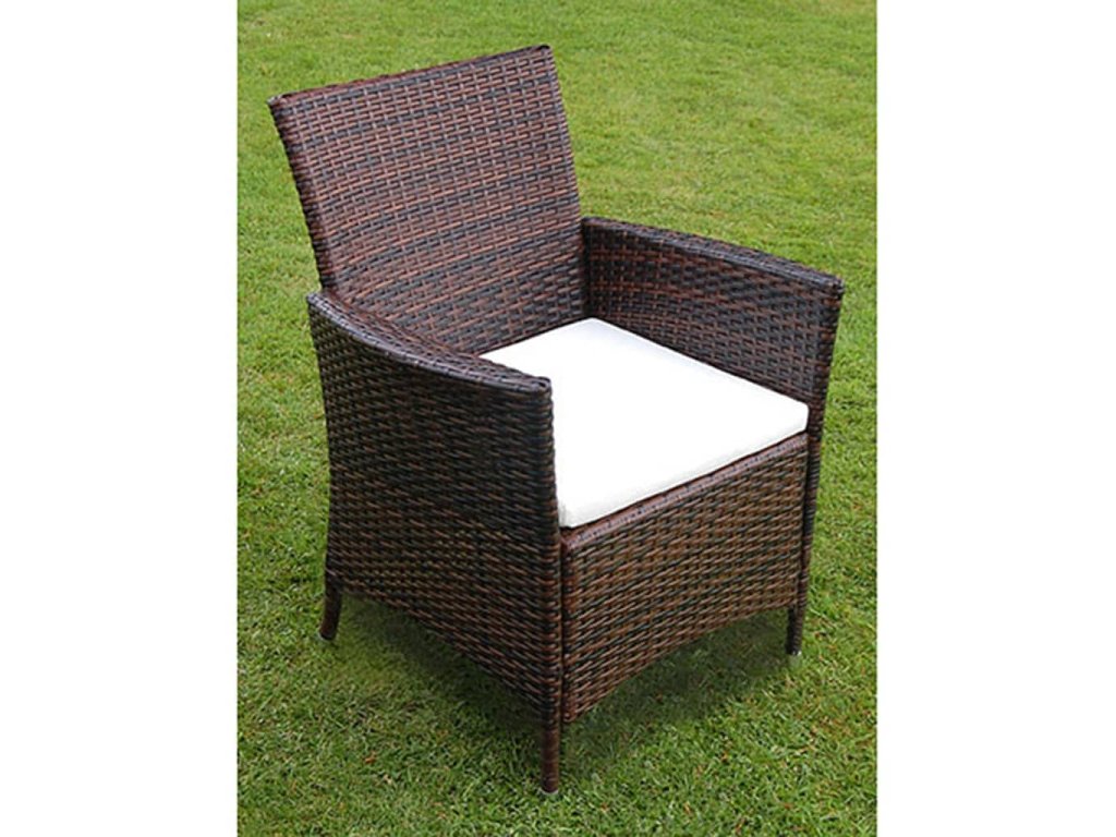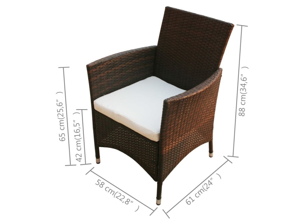 V balení sa nachádza spolu 9 kusov nábytku: 1 stôl so sklenenou doskou, 4 ratanové kreslá a 4 odnímateľné podložky na sedadlo.