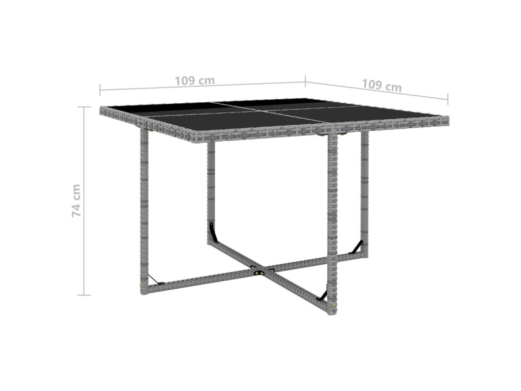 - Materiál: PE (polyetylén) ratan + sklenená doska stola + oceľový rám s práškovou povrchovou úpravou
