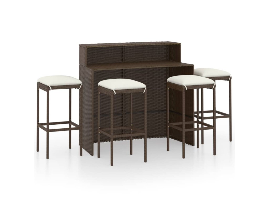 Barová súprava je vyrobená z PE ratanu, ktorý je vodovzdorný a odolný voči poveternostným vplyvom. Dá sa ľahko očistiť, je trvácna a vhodná aj na každodenné používanie. Oceľový rám s práškovou povrchovou úpravou dodáva všetkým položkám potrebnú stabilitu a odolnosť. Vďaka ľahkej konštrukcii sa dajú bez námahy presúvať. Hrubé, odnímateľné podložky na sedadlo poskytujú optimálne pohodlie. Podložky na sedadlo majú poťahy na zips, ktoré môžete jednoducho zvliecť a oprať.