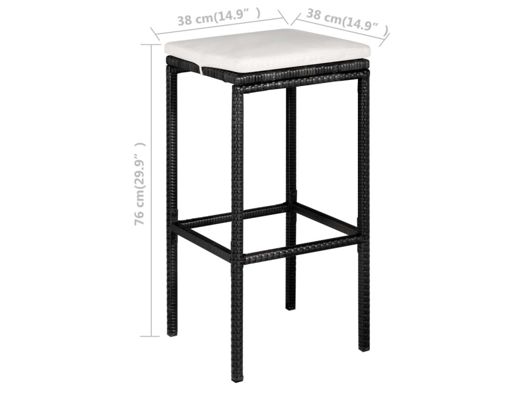 Barová súprava je vyrobená z PE ratanu, ktorý je vodovzdorný a odolný voči poveternostným vplyvom. Dá sa ľahko očistiť, je trvácna a vhodná aj na každodenné používanie. Oceľový rám s práškovou povrchovou úpravou dodáva všetkým položkám potrebnú stabilitu a odolnosť. Vďaka ľahkej konštrukcii sa dajú bez námahy presúvať. Hrubé, odnímateľné podložky na sedadlo poskytujú optimálne pohodlie. Podložky na sedadlo majú poťahy na zips, ktoré môžete jednoducho zvliecť a oprať.