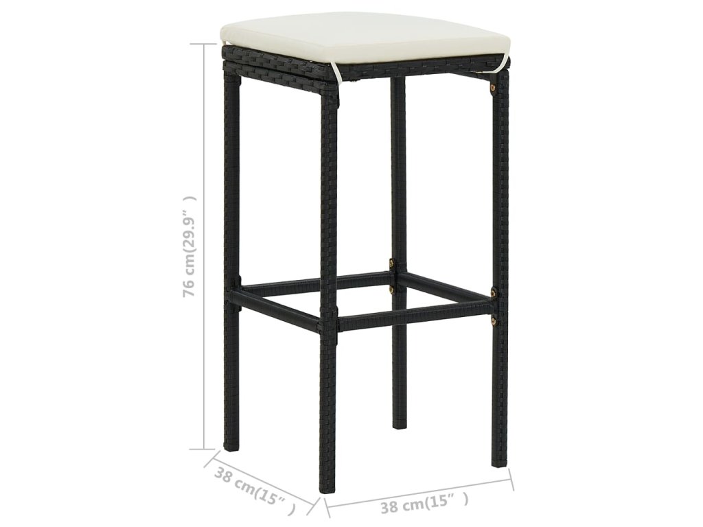 Barová súprava je vyrobená z PE ratanu, ktorý je vodovzdorný a odolný voči poveternostným vplyvom. Dá sa ľahko očistiť, je trvácna a vhodná aj na každodenné používanie. Oceľový rám s práškovou povrchovou úpravou dodáva všetkým položkám potrebnú stabilitu a odolnosť. Vďaka ľahkej konštrukcii sa dajú bez námahy presúvať. Hrubé, odnímateľné podložky na sedadlo poskytujú optimálne pohodlie. Podložky na sedadlo majú poťahy na zips, ktoré môžete jednoducho zvliecť a oprať. Poznámka: Počas dažďa, snehu a mrazu odporúčame súpravu zakryť.
