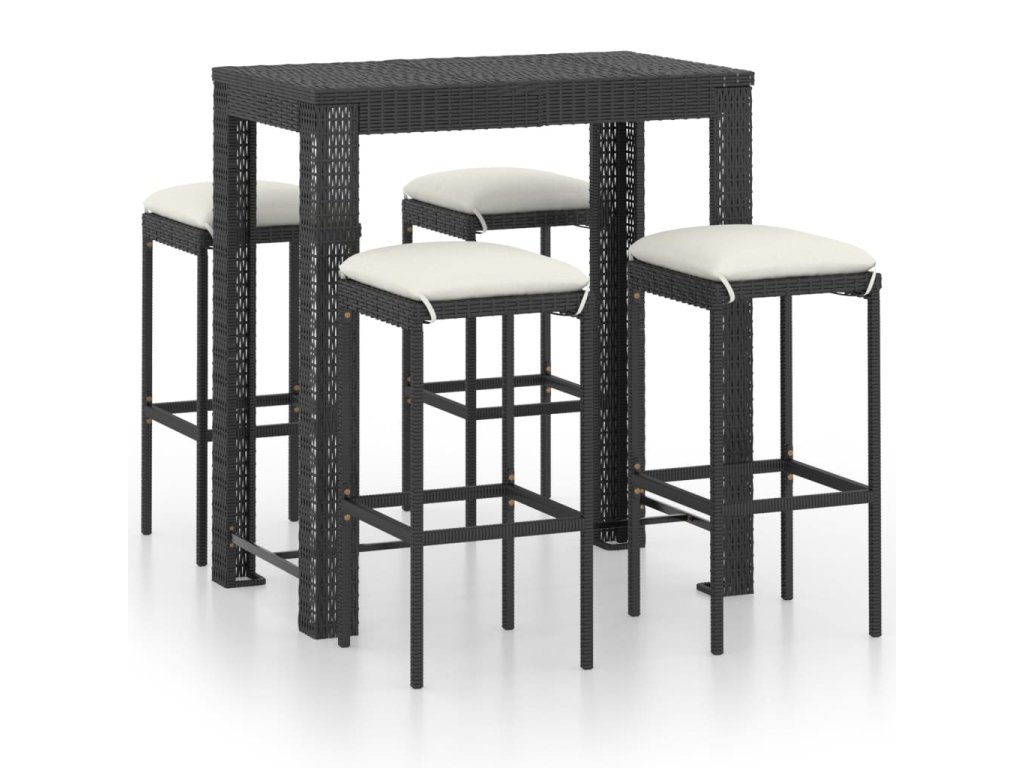 Barový stôl je opatrený oceľovým rámom s práškovanou povrchovou úpravou, vďaka čomu je stabilný a odolný. Štvorcová stolová doska je ideálna na položenie nápojov, jedla alebo dekoratívnych predmetov. Stoličky majú pevnú konštrukciu z oceľového rámu a sú vyrobené z PE ratanu odolného voči poveternostným vplyvom, čo zaisťuje ich stabilitu a ľahké premiestňovanie. Vankúš a opierka nôh tiež zvyšujú pohodlie pri sedení na stoličke. Poťah vankúša z polyesteru so skrytým zipsom uľahčuje čistenie.