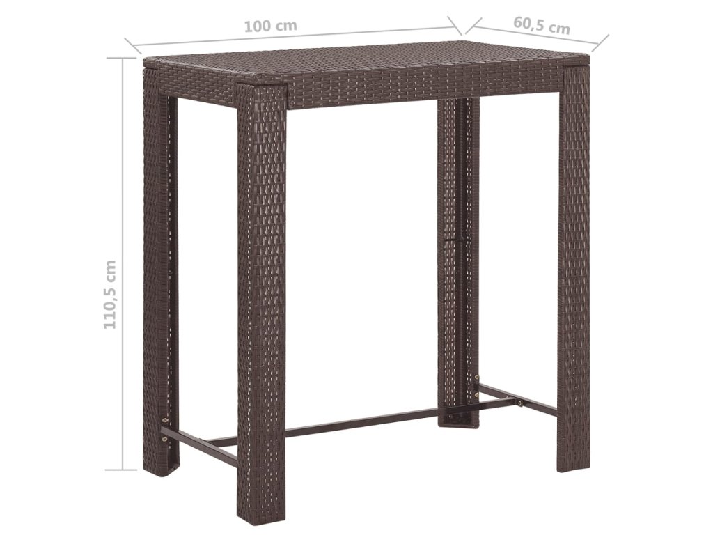 Barová súprava je vyrobená z PE ratanu, ktorý je vodovzdorný a odolný voči poveternostným vplyvom. Dá sa ľahko očistiť, je trvácna a vhodná aj na každodenné používanie. Oceľový rám s práškovou povrchovou úpravou dodáva stolu a stoličkám potrebnú stabilitu a odolnosť. Doska stola je ideálna na umiestnenie nápojov, jedla alebo dekoratívnych položiek. Opierka nôh a vankúše tiež zvyšujú pohodlie počas sedenia. Vďaka ľahkej konštrukcii sa dajú jednotlivé položky bez námahy presúvať.