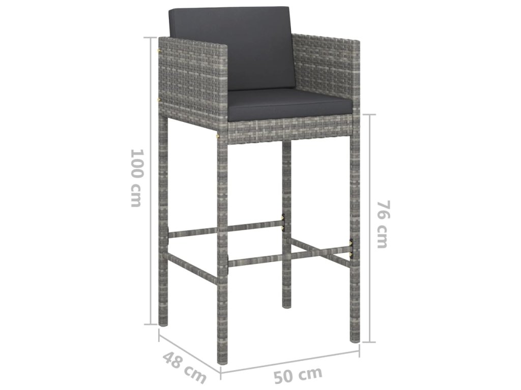 Barová súprava je vyrobená z PE ratanu, ktorý je vodovzdorný a odolný voči poveternostným vplyvom. Dá sa ľahko očistiť, je trvácna a vhodná aj na každodenné používanie. Oceľový rám s práškovou povrchovou úpravou dodáva stolu a stoličkám potrebnú stabilitu a odolnosť. Doska stola je ideálna na umiestnenie nápojov, jedla alebo dekoratívnych položiek. Opierka nôh a vankúše tiež zvyšujú pohodlie počas sedenia. Vďaka ľahkej konštrukcii sa dajú jednotlivé položky bez námahy presúvať.