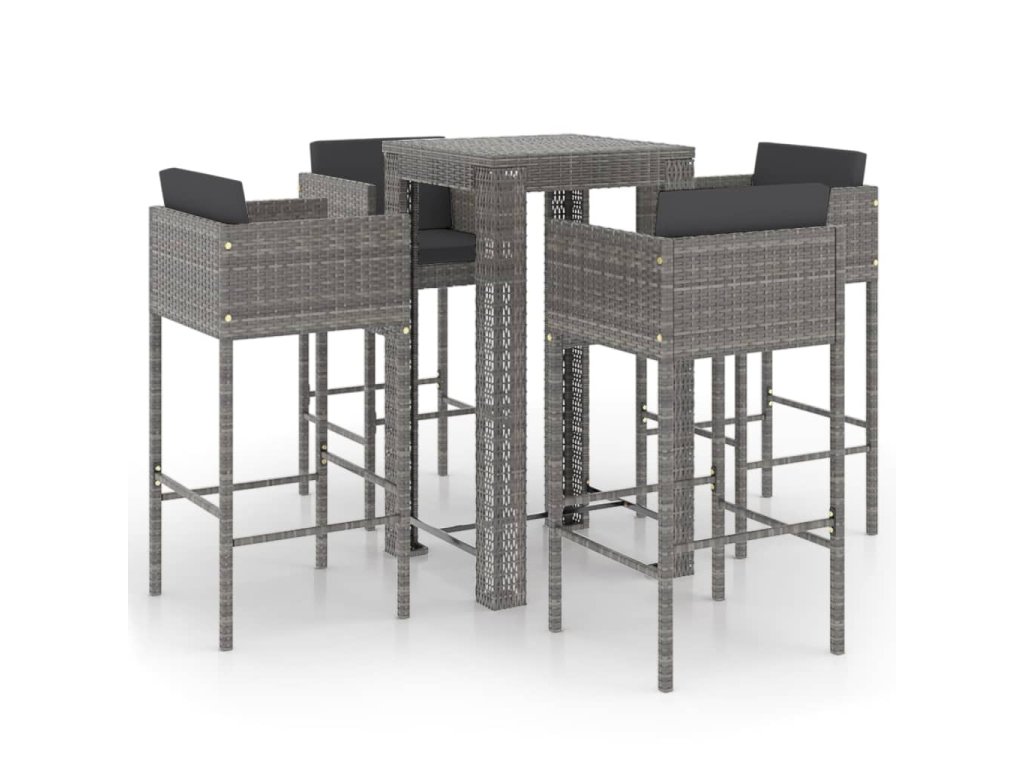 Barová súprava je vyrobená z PE ratanu, ktorý je vodovzdorný a odolný voči poveternostným vplyvom. Dá sa ľahko očistiť, je trvácna a vhodná aj na každodenné používanie. Oceľový rám s práškovou povrchovou úpravou dodáva stolu a stoličkám potrebnú stabilitu a odolnosť. Doska stola je ideálna na umiestnenie nápojov, jedla alebo dekoratívnych položiek. Opierka nôh a vankúše tiež zvyšujú pohodlie počas sedenia. Vďaka ľahkej konštrukcii sa dajú jednotlivé položky bez námahy presúvať.