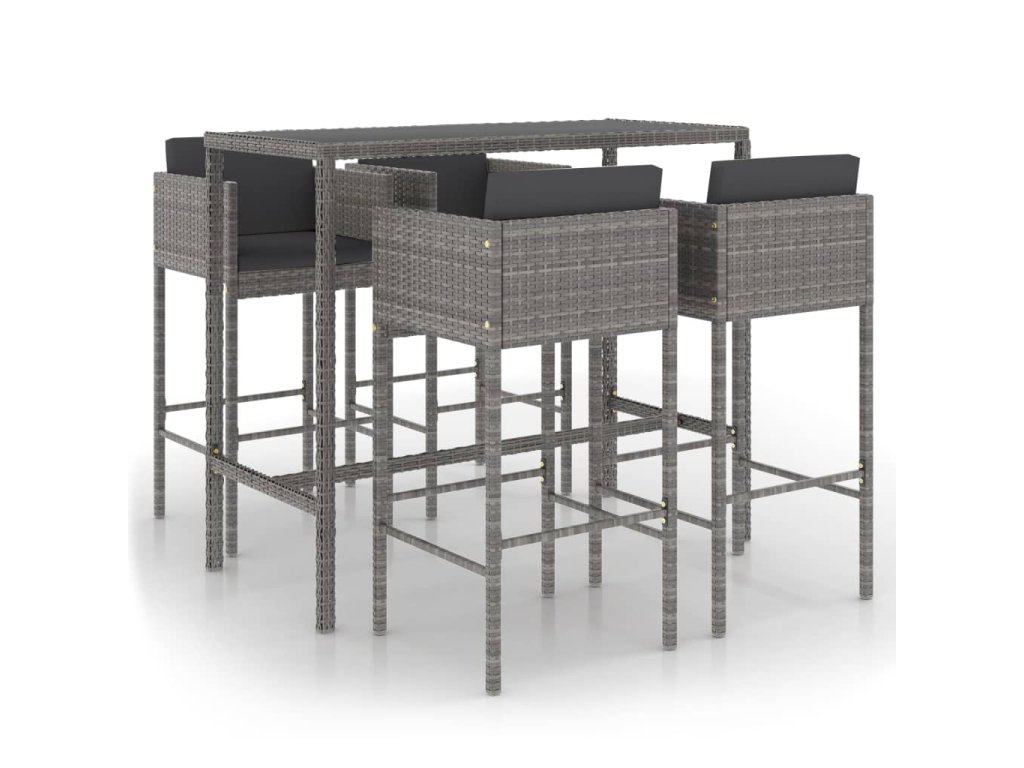 Barová súprava je vyrobená z PE ratanu, ktorý je vodovzdorný a odolný voči poveternostným vplyvom. Dá sa ľahko očistiť, je trvácna a vhodná aj na každodenné používanie. Oceľový rám s práškovou povrchovou úpravou dodáva stolu a stoličkám potrebnú stabilitu a odolnosť. Doska stola z tvrdeného skla je ideálna na umiestnenie nápojov, jedla alebo dekoratívnych položiek. Opierka nôh a vankúše tiež zvyšujú pohodlie počas sedenia. Vďaka ľahkej konštrukcii sa dajú jednotlivé položky bez námahy presúvať.