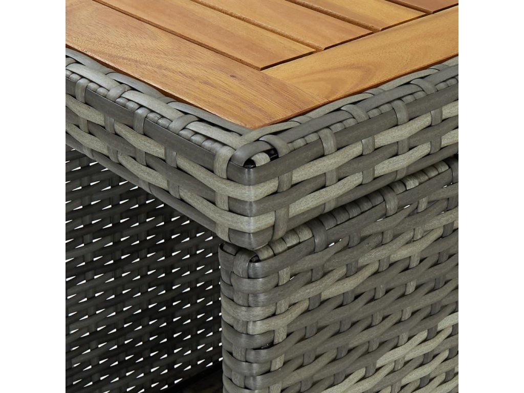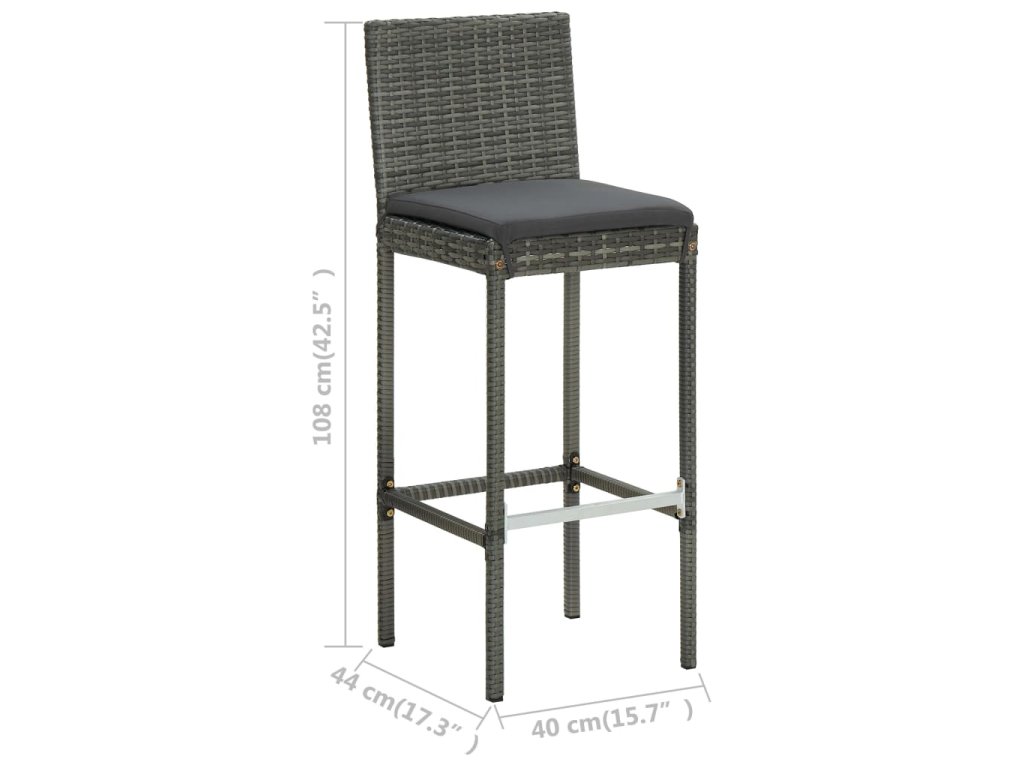 Barová súprava je vyrobená z PE ratanu, ktorý je vodovzdorný a odolný voči poveternostným vplyvom. Dá sa ľahko očistiť, je trvácna a vhodná aj na každodenné používanie. Oceľový rám s práškovou povrchovou úpravou dodáva všetkým položkám potrebnú stabilitu a odolnosť. Vďaka ľahkej konštrukcii sa dajú bez námahy presúvať. Hrubé, odnímateľné podložky na sedadlo poskytujú optimálne pohodlie. Podložky na sedadlo majú poťahy na zips, ktoré môžete jednoducho zvliecť a oprať.
