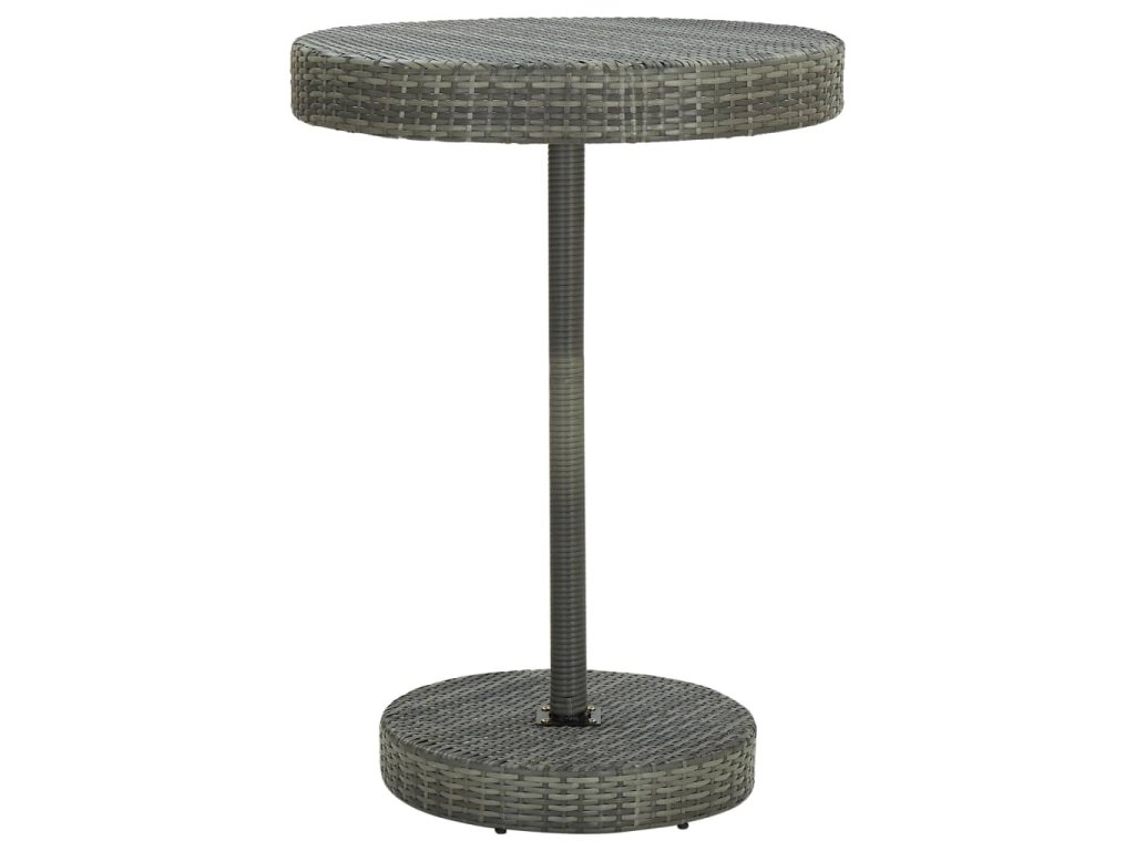 Barový stôl je opatrený oceľovým rámom s práškovanou povrchovou úpravou, vďaka čomu je stabilný a odolný. Okrúhla stolová doska je ideálna na položenie nápojov, jedla alebo dekoratívnych predmetov. Stoličky majú pevnú konštrukciu z oceľového rámu a sú vyrobené z PE ratanu odolného voči poveternostným vplyvom, čo zaisťuje ich stabilitu a ľahké premiestňovanie. Opierka nôh dodáva stoličke väčšie pohodlie počas sedenia.