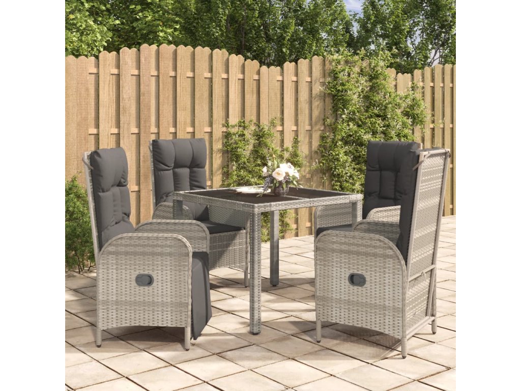 Táto štýlová záhradná jedálenská súprava s elegantným a moderným dizajnom bude skvelou voľbou na stolovanie alebo relaxáciu vo vašej záhrade.