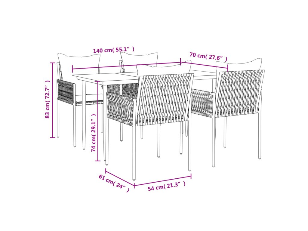 - Pevný a stabilný rám: Vďaka oceľovým rámom je jedálenská súprava robustná a stabilná na každodenné používanie vonku.