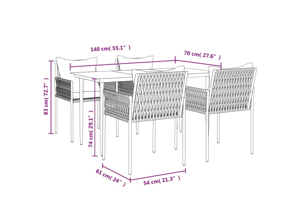 - Pevný a stabilný rám: Vďaka oceľovým rámom je jedálenská súprava robustná a stabilná na každodenné používanie vonku.