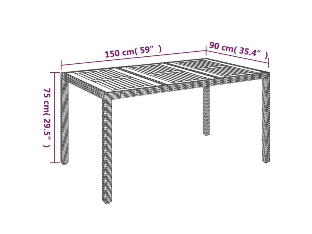 - Materiál: PE ratan, práškovaná oceľ, masívne akáciové drevo s olejovým náterom
