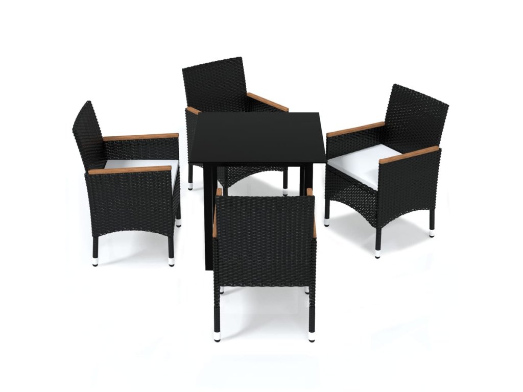 Robustný oceľový rám obalený PE ratanom odolným voči poveternostným vplyvom je odolný voči hrdzi a plesniam a poskytuje roky kvalitného odpočinku. Podrúčky sú krásne zdobené masívnym akáciovým drevom s prírodnou olejovou povrchovou úpravou, ktorá prináša pocit rustikálneho šarmu. Vonkajší stôl má sklenenú dosku s jednoduchými líniami, ktorá sa ľahko čistí a je vhodná na vonkajšie použitie. Hliníkový rám zároveň zaisťuje stabilitu a pevnosť. Husto polstrované vankúše navyše poskytujú maximálne pohodlie počas sedenia. Tento terasový jedálenský set sa vďaka ľahkej konštrukcii aj ľahko prenáša.
