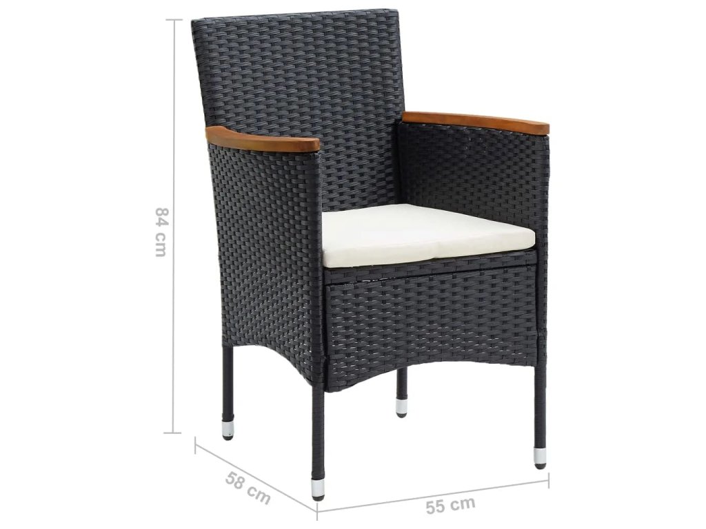 Robustný oceľový rám obalený PE ratanom odolným voči poveternostným vplyvom je odolný voči hrdzi a plesniam a poskytuje roky kvalitného odpočinku. Podrúčky sú krásne zdobené masívnym akáciovým drevom s prírodnou olejovou povrchovou úpravou, ktorá prináša pocit rustikálneho šarmu. Vonkajší stôl má sklenenú dosku s jednoduchými líniami, ktorá sa ľahko čistí a je vhodná na vonkajšie použitie. Hliníkový rám zároveň zaisťuje stabilitu a pevnosť. Husto polstrované vankúše navyše poskytujú maximálne pohodlie počas sedenia. Tento terasový jedálenský set sa vďaka ľahkej konštrukcii aj ľahko prenáša.