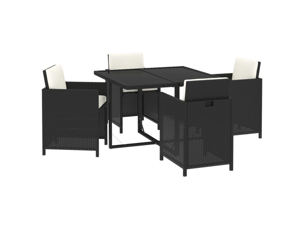 Súprava je vyrobená z PE ratanu odolného voči vode a vplyvom počasia. Ľahko sa čistí, je pevný a vhodný na každodenné používanie vonku. Oceľový rám s práškovanou povrchovou úpravou zabezpečuje, že sú stôl a stoličky pevné a trvácne. Hladká sklenená doska stola je ideálna na umiestnenie nápojov, jedla alebo dekoratívnych predmetov. Hrubé, mäkké, penou vyplnené sedáky a opierky tiež zvyšujú pohodlie počas sedenia. Navyše môžete operadlo sklopiť a stoličky uložiť pod stôl, čím ušetríte cenný úložný priestor, keď sa súprava nepoužíva. Vďaka ľahkej konštrukcii sa všetky predmety ľahko premiestňujú.