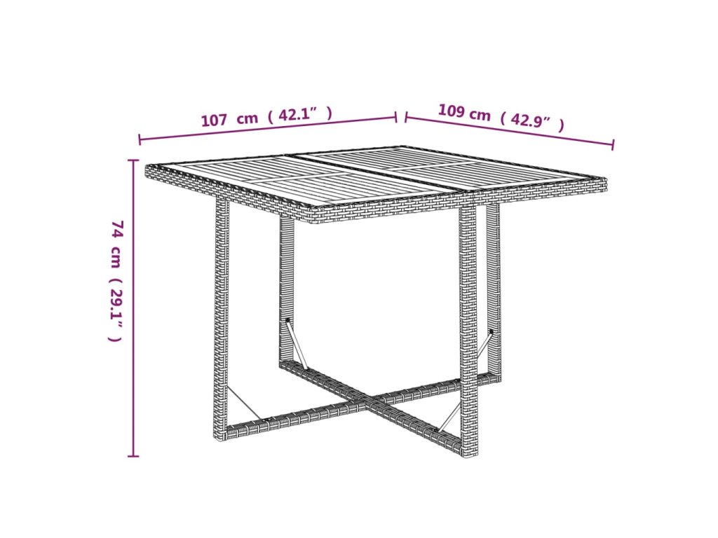 - Materiál: PE ratan, oceľ, akáciový masív s prírodným olejovým náterom