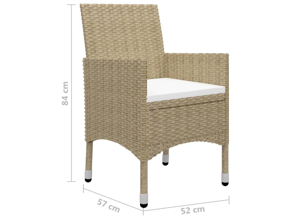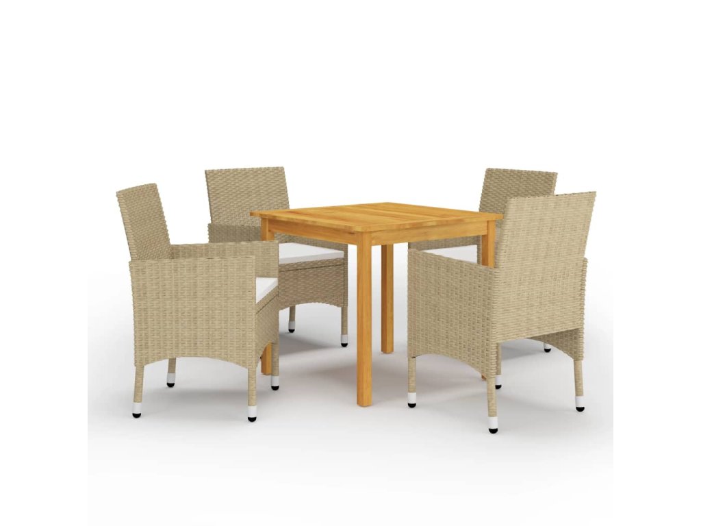 Jedálenský stôl je vyrobený z masívneho akáciového dreva s olejovou povrchovou úpravou, vďaka čomu je stabilný, odolný a ľahko sa udržiava. Vďaka práškovanému oceľovému rámu, ktorý je pokrytý vodeodolným PE ratanom sú tieto jedálenské stoličky pevné a ľahko sa čistia. Jedálenská stolička má zaoblené operadlo a lakťovú opierku, a má ergonomickejší tvar pre maximálne pohodlie. Každé sedadlo je vybavené odnímateľným husto polstrovaným vankúšom, ktorý zvyšuje pohodlie počas sedenia.