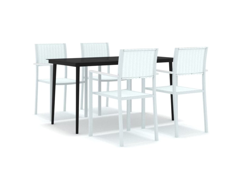 Táto súprava nábytku na terasu je vyrobená z oceľového rámu s práškovým nástrekom, vďaka čomu je pevná a stabilná. Je vhodná na každodenné používanie vonku. Hladká sklenená doska stola sa ľahko čistí vlhkou handričkou a je ideálna na umiestnenie jedál, nápojov a iných dekoratívnych predmetov. Ľahké vonkajšie jedálenské stoličky sú vyrobené z plastu, čo uľahčuje ich čistenie a presúvanie. Záhradné jedálenské stoličky s ratanovým vzhľadom dodajú vášmu vonkajšiemu priestoru prírodný nádych.