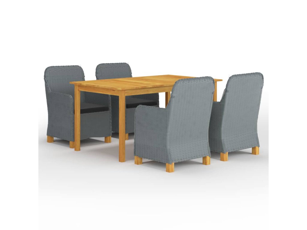 Jedálenský stôl je vyrobený z masívneho akáciového dreva s olejovou úpravou, vďaka čomu je stabilný, odolný a ľahko sa udržiava. Vonkajšie stoličky s oceľovým rámom s práškovým povrchom sú pokryté okrúhlym PE ratanom, a sú robustné a ľahko sa čistia. Husto polstrované vankúše zabezpečia ešte väčšie pohodlie počas oddychu. Poťah na vankúš je vybavený zipsom, dá sa jednoducho zvliecť a oprať. Nohy s masívneho akáciového dreva sa vyznačujú pevnosťou a stabilitou. Záhradné stoličky môžete jednoducho presúvať vďaka ich ľahkej konštrukcii.