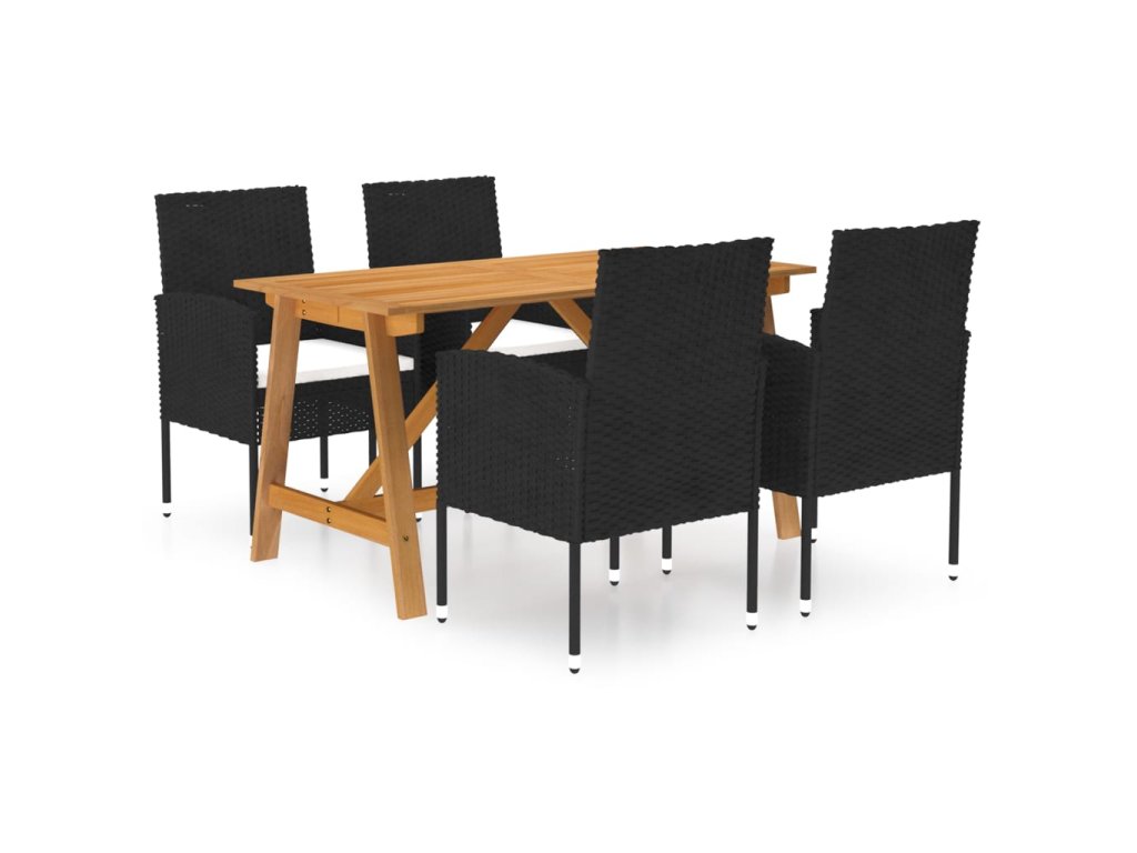 Jedálenský stôl je vyrobený z masívneho akáciového dreva s olejovou povrchovou úpravou, vďaka čomu je stabilný, odolný a ľahko sa udržiava. Vďaka práškovanému oceľovému rámu, ktorý je pokrytý vodeodolným PE ratanom sú tieto jedálenské stoličky pevné a ľahko sa čistia. Každé sedadlo je vybavené odnímateľným husto polstrovaným vankúšom, ktorý zvyšuje pohodlie počas sedenia.