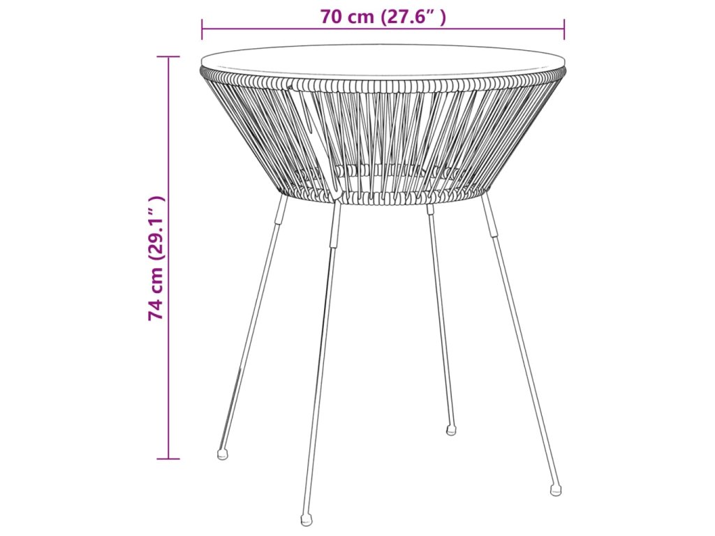 - Materiál: Okrúhly PVC ratan, tvrdené sklo, oceľ s práškovým nástrekom