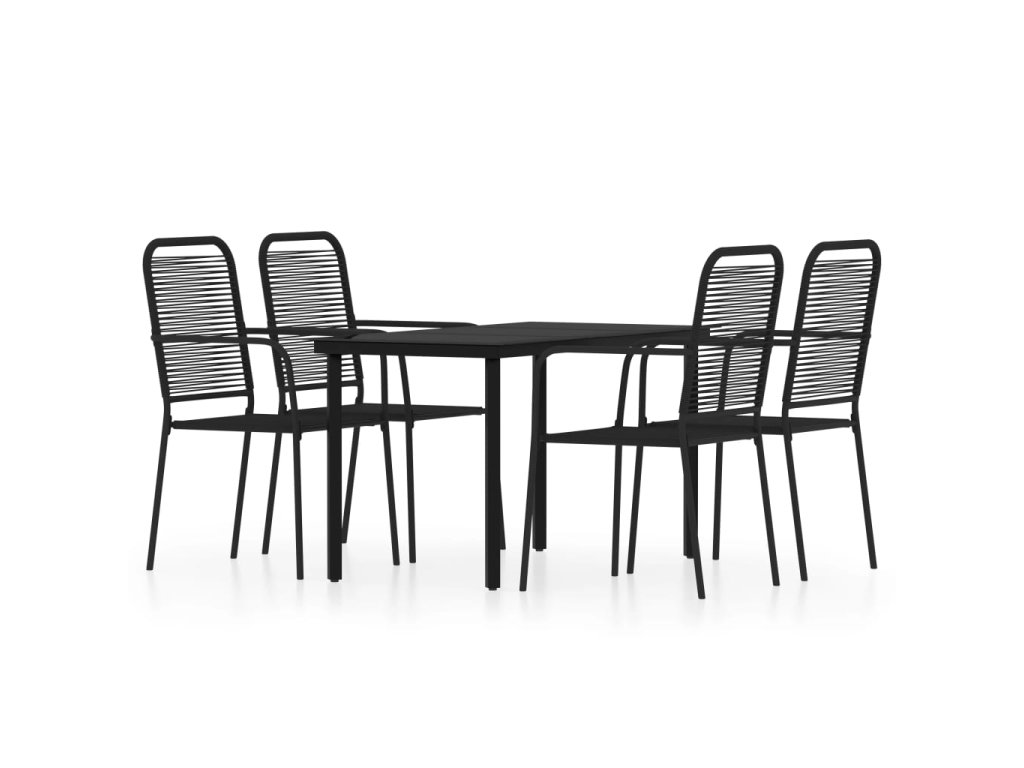 Táto záhradná jedálenská súprava má oceľový rám s práškovým nástrekom, vďaka čomu je stôl so stoličkami stabilný a odolný. Operadlo a sedadlo sú vyrobené zo spleteného bavlneného lana, ktoré je mäkké na dotyk a pevné na dlhodobé používanie. Hladká sklenená doska stola sa jednoducho čistí vlhkou handričkou a je ideálna na umiestnenie jedál, nápojov a dekoratívnych predmetov.