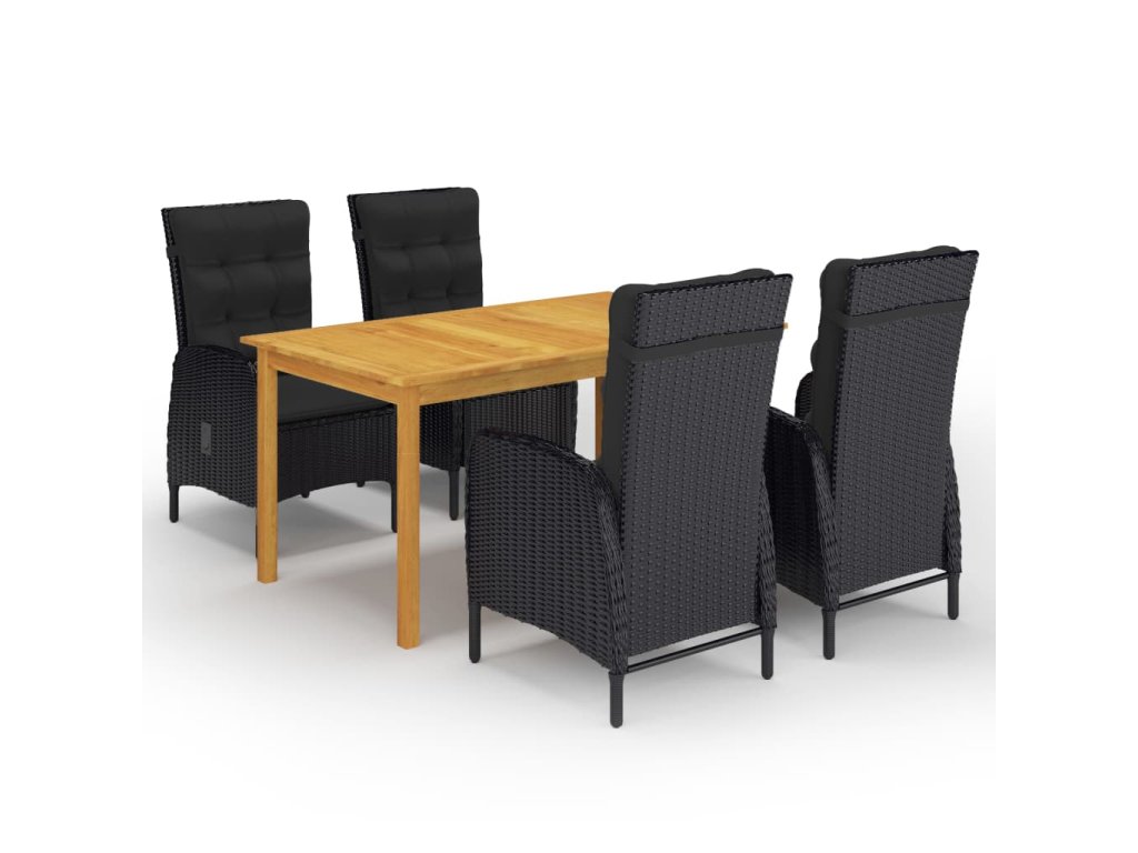 Jedálenský stôl je vyrobený z masívneho akáciového dreva s olejovou povrchovou úpravou, vďaka čomu je stabilný, odolný a ľahko sa udržiava. Vďaka oceľovému rámu s práškovou povrchovou úpravou potiahnutému PE ratanom odolným voči poveternostným vplyvom sú tieto jedálenské stoličky stabilné a ľahko sa čistia. Jedálenská stolička navrhnutá so zakriveným operadlom a opierkou na ruky má ergonomickejší tvar pre maximálne pohodlie. Súčasťou balenia sú vankúše pre väčšiu oporu a poťah na zips je odnímateľný pre jednoduché pranie.