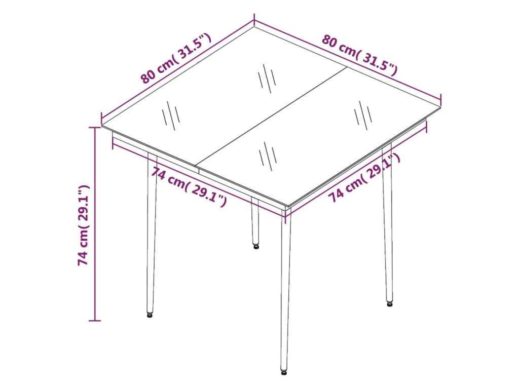- Rozmery stola: 80 x 80 x 74 cm (D x Š x V)