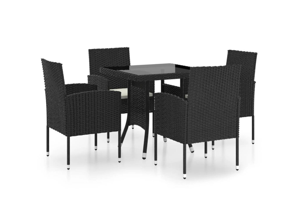 Jedálenský stôl a stoličky sú vyrobené z bezúdržbového PE ratanu, vďaka čomu sa ľahko čistia vlhkou handričkou a sú ideálne na vonkajšie použitie. Stôl a stoličky sú vďaka oceľovým rámom stabilné a bezpečné. Sklenená stolová doska tiež dodá vášmu vonkajšiemu priestoru luxusný nádych. Navyše, silné odnímateľné podsedáky sú veľmi pohodlné.