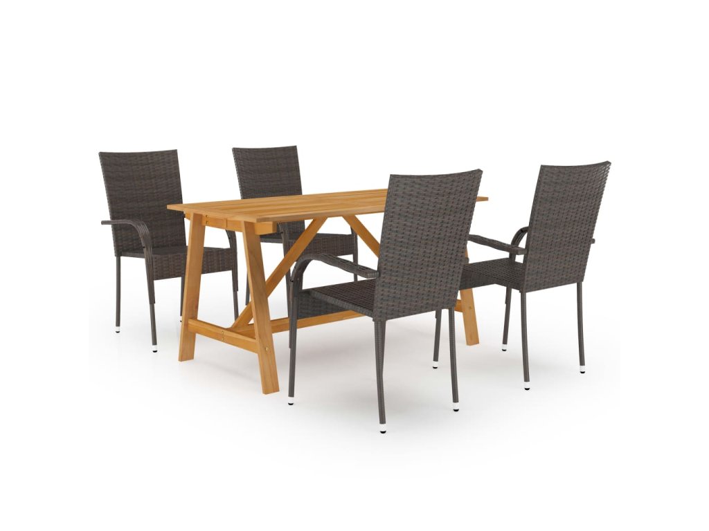 Jedálenský stôl je vyrobený z masívneho akáciového dreva s olejovou povrchovou úpravou, vďaka čomu je stabilný, odolný a ľahko sa udržiava. Tieto jedálenské stoličky s oceľovým rámom s práškovým nástrekom pokrytým PE ratanom odolným voči poveternostným vplyvom sú pevné a ľahko sa čistia. Vonkajšie stoličky sú ľahké a dajú sa skladať na seba, aby sa ušetrilo miesto, keď sa nepoužívajú.