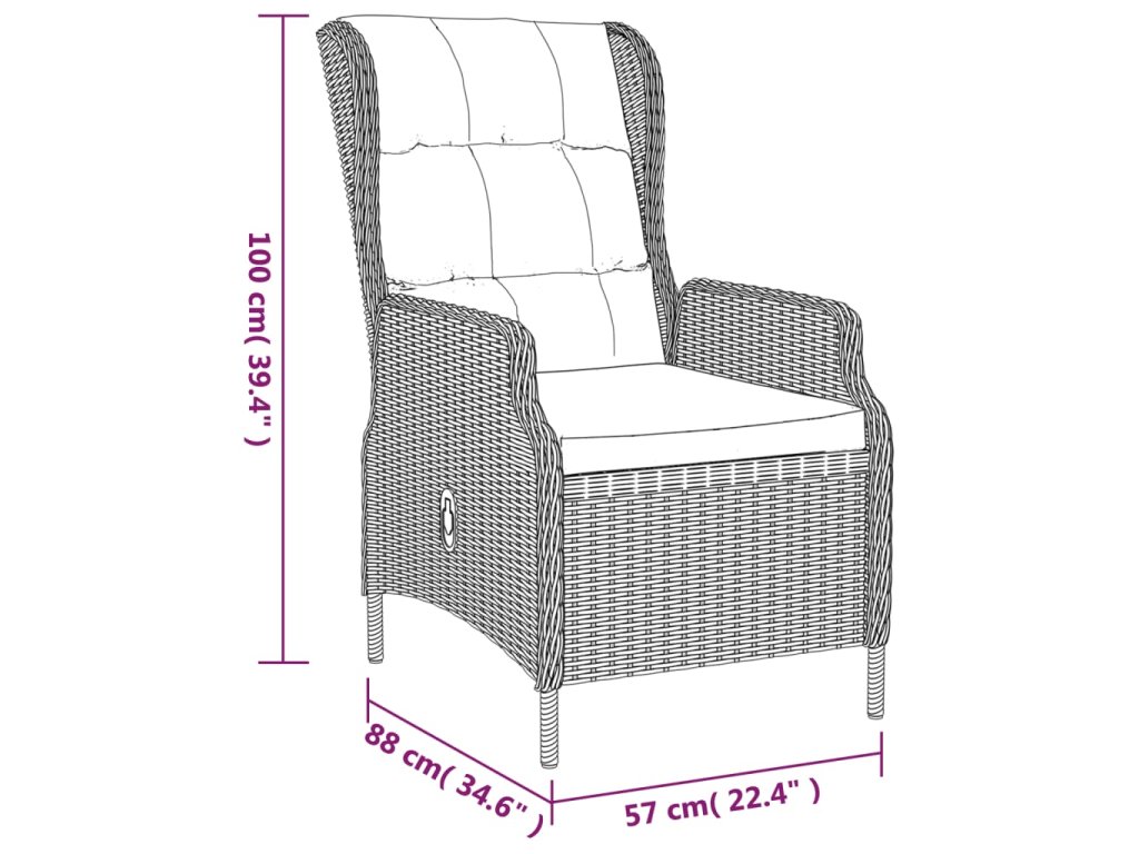 - Rozmery kresla (nesklopené): 57 x 88 x 100 cm (Š x H x V)