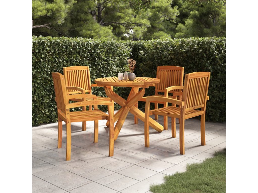 - Masívne tíkové drevo: Masívne tíkové drevo je krásny prírodný materiál. Bolo vyzreté, umelo vysušené a jemne obrúsené, čo mu dalo veľmi hladký vzhľad. Teakové drevo je známe svojou výnimočnou pevnosťou a odolnosťou voči poveternostným vplyvom.